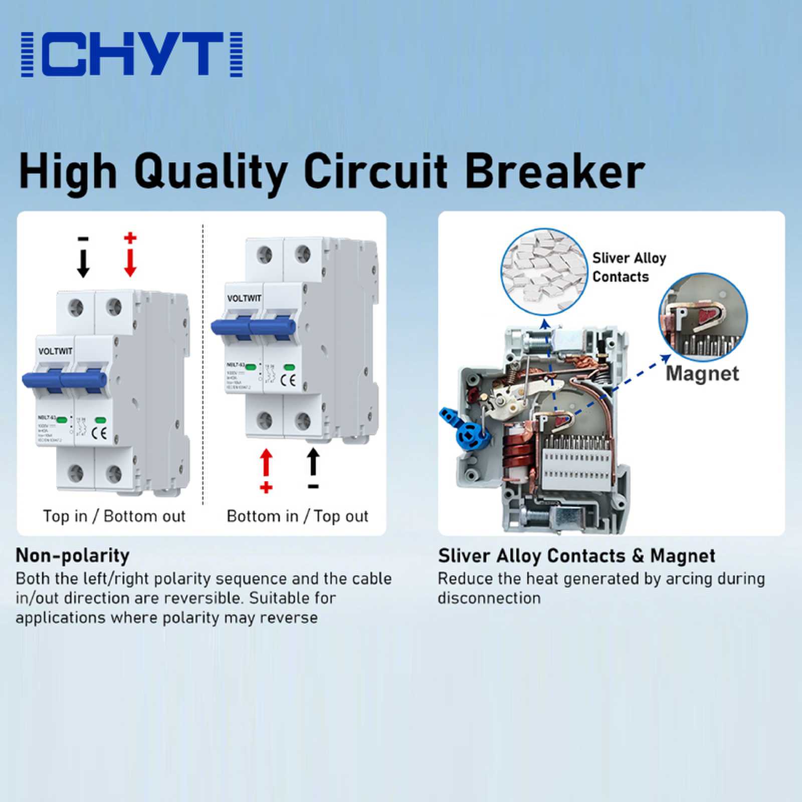 Malugod kang tinatanggap na dumating sa aming pabrika upang bumili ng pinakabagong pagbebenta, mababang presyo, at de-kalidad na DC trip circuit breaker, inaasahan ni Chyt na makipagtulungan sa iyo.
