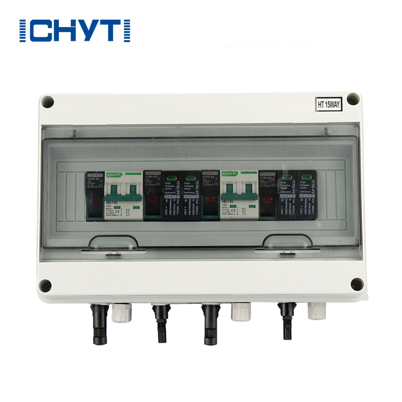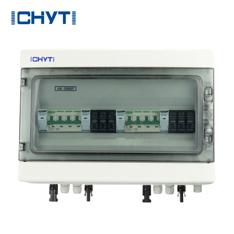 A: Ang CHYT solar combiner box ay mahalagang isang junction box na nagsisilbi sa layunin ng mahigpit na pagkonekta at paglalagay ng maraming wire at cable sa pamamagitan ng iba't ibang entry port. Ang pangunahing tungkulin nito ay upang pagsamahin ang ilang mga string ng photovoltaic (PV) modules at isama ang mga ito sa isang solong karaniwang bus.